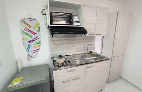loft pequeño, barrio residencial muy tranquilo, internet 300 megas simétricas, cerca a transporte, iglesia, centros comerciales en el Barrio Laureles la Castellana, estrato 5, tiene lo necesario para tu estancia, con dos camas, la de arriba de 1,20cm y la cama que sale por debajo de 1mts, como para una máximo 2 personas, tiene portería diurna en semana, es primer piso.