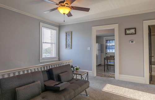Located in the heart of downtown Logan, the newly renovated Loft on Hunter is the ideal location for an urban getaway with the benefits of the scenic Hocking Hills within a 10-20 minute drive. Sit and relax after a day of shopping or hiking on our full front porch.