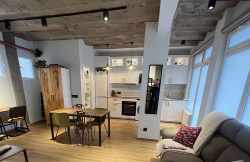 It is a comfortable industrial-style studio on the ground floor, open-plan and high ceilings, super comfortable and carefully cared for. It is spacious, and thanks to its open-plan layout, it offers greater comfort and a feeling of spaciousness. A unique studio.