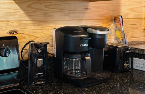 Our newly renovated 1-bedroom log cabin is designed for couples looking for a romantic escape. The open floor plan features a large stone fireplace, a new log-style queen-size bed with a luxurious foam mattress, and a custom-tiled 2-person private bath. Wide glass French doors allow you to enjoy the mountain views from the comfort of your bed.