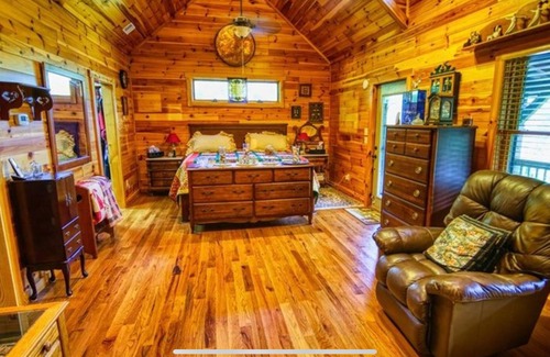 Twisted River cabin getaway awaits at this terrific 3-bedroom retreat. With 2 king beds, 1 queen bed, and a cozy sofa bed in a , there's plenty of space for all guests. Enjoy being in a getaway-way but 30 minutes away from civilization, enjoy ski slopes, whitewater rafting, river tubing, and the 17 mile Virginia Creeper Bike Trial, Tweetsie Rasilroad Amusement Pasrk, High Gravity Adventure Park, and the Blue Ridge Parkway. ENJOY the 3 acre property along with the Mountain View called The Peak. A tremendous place to call home-base while you're away, we hope you enjoy your stay.