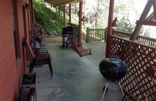 Log Cabin on the Toccoa river in the northeast Georgia mountains near Blueridge and Blairsville Ga. Great fishing and tubing right at your back door. Porch overlooking the Toccoa River,Rocking chairs and swing on porch for your comfort.