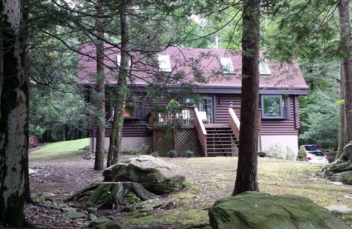 Welcome to our beautiful Lake Wallenpaupack log cabin retreat. Our well-appointed, 4 BR and 2.5-bathroom home is located in the very quiet, private and secluded Lakeland Colony. Our home sits on a wooded lot across a private lane from Lake Wallenpaupack and has beautiful seasonal views of the lake. The home backs up to 400+ acres of community owned private woodlands. Adjacent to our own private woodlands sits Lacawac Sanctuary, a 550-acre nature preserve that is open to the public and features miles of its own hiking trails. That's close to 1000 acres of nature at its finest, literally right out our back door. The entrance trail to the sanctuary is about 200 yards from our home at the end of our lane.