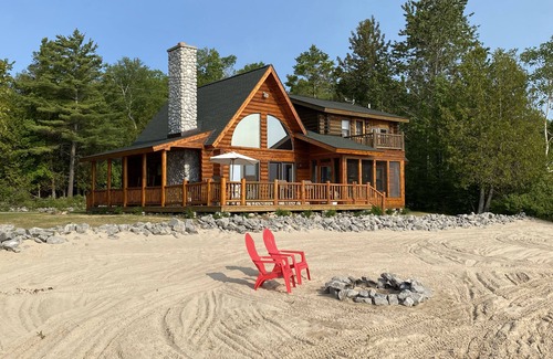 Log Home on Sandy Beach is a beautiful western red cedar log home that is located on Lake Huron, one of the 5 Great Lakes. Lake Huron provides both crashing waves and calm seas and is great for swimming, fishing and just viewing.