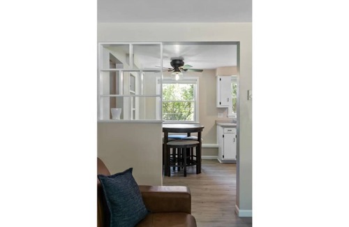 Park in the driveway and walk under the maple shade tree to your front door. Use your custom code to enter your own space and make yourselves comfortable.