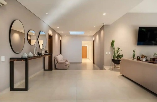 Nestled in Medellín, this 6-bedroom, 6-bathroom vacation home brings it all within your reach. Fans of nature and the outdoors will love being 2 minutes by car from El Tesoro Shopping Park and 4 minutes from Oviedo Shopping Center. Make short work of the 5-minute drive to Lleras Park or the 5-minute drive to Santafé Mall.
