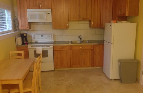 We have one bedroom + mud room, fully furnished bright basement suite with private entrance in the Black Mountain area available for daily rental, It is located on a quiet cul-de-sac road. It is furnished with a queen size bed and sofa bed in the living room. The kitchen has everything you need for cooking. The kitchen and living room has heated tile floor.