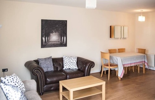 This 2-bed apartment is furnished for functionality and comfort alike, with a fully-equipped kitchen, plenty of seating space, and a flat-screen multi-channel TV. Large windows provide a charming view of the nearby Loreto Abbey, and let natural beauty into the apartment.