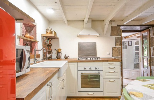 The house is divided into two floors, the ground floor has a fully equipped kitchen, living room, dining room, bathroom and direct access to the terrace where we find the barbecue area and a great stone pergola for family gatherings.