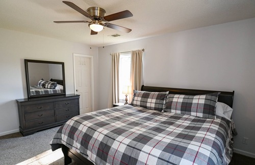 The fully furnished home sleeps six guests comfortably, there is a king-size bed in the primary bedroom with its own private bathroom. The remaining two guest rooms have a queen-size bed and share a guest bathroom. The kitchen is fully stocked with essential kitchenware and cookware. We set out a welcome tray with snacks, tea bags, and pods for the Keurig K Cups coffee maker. This is a non-smoking property, not suitable for events. Children and pets are considered and require approval before check-in. Be aware of liabilities, there is no fencing and the road is near the house. Please reach out directly to discuss your and your pet's stay.