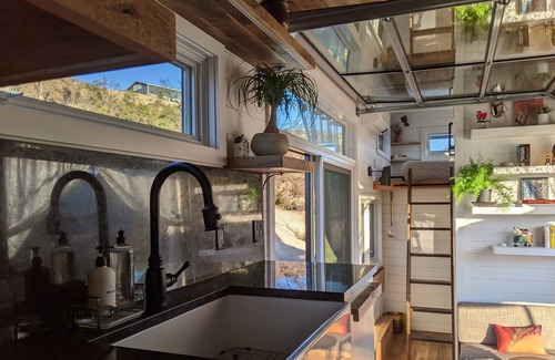 Experience quietude and nature in style at the intimate yet spacious Lotus Tiny Home nestled in a sunny clearing of the Santa Cruz Mountains.