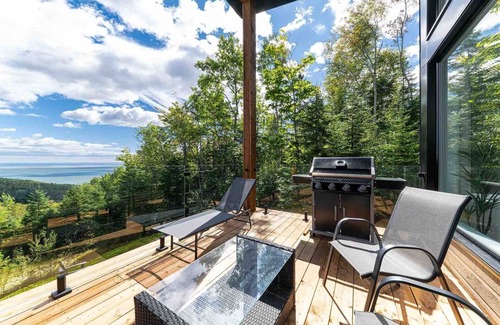 This vacation rental chalet offers an exceptional holiday experience with its 4 bedrooms, 3.5 bathrooms, spectacular views of the majestic Saint Lawrence River, and an ideal location just 7 minutes from Baie-Saint-Paul.