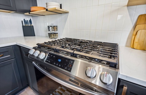 • Fully stocked kitchen with modern appliances and cookware for dining in