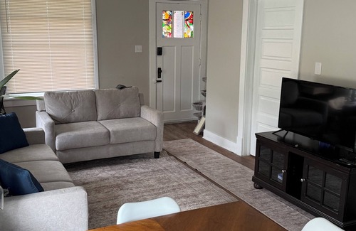 Your Michigan City adventure begins at this 2-bedroom house. With 1 queen bed and 1 bunk bed, this cozy retreat offers a nice bathroom with a bathtub and hair dryer. The property also features amenities like heating, iron, and AC. We hope you'll enjoy your stay at our house.