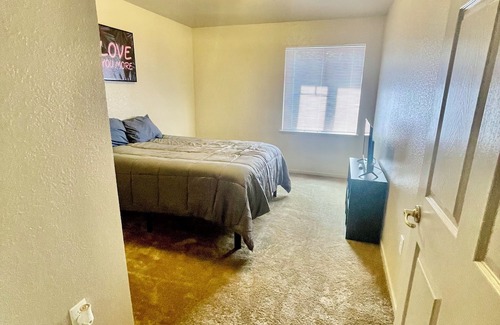 Experience Elk Grove like a local in this delightful 3-bedroom apartment. Nestled in a serene neighborhood, this enchanting property offers a tranquil retreat for guests. With three queen beds, it comfortably accommodates a group of friends or a family. Immerse yourself in the charm of this home, complete with a fitness room, WiFi, washing machine, AC, heating, iron, and even a coin laundry. The two bathrooms, one with a bathtub, provide convenience and relaxation. Whether you're exploring the city or simply unwinding in the peaceful ambiance, we hope you enjoy what our place and Elk Grove has to offer.