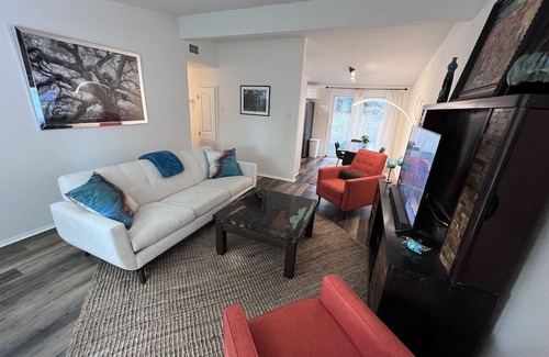 Enjoy your stay in this completely remodeled and beautifully furnished 3 bedroom, 1.5 bath house in popular downtown Fairhope. This newly painted cottage on a quiet street has brand new impact glass windows for outstanding noise reduction. The kitchen is fully stocked so you can avoid the restaurant revolving door! This home is immaculately clean, with marble countertops, no carpeting, and vaulted ceilings. Generous kitchen, bath and bedroom linens are provided. Only 45 minutes to the most beautiful beaches in the Southeast. Located within walking distance of charming downtown Fairhope, this place is a gem!