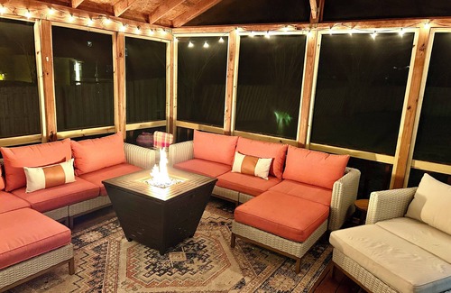 This house boasts 4 inviting bedrooms, including 1 king bed and 3 queen beds. With 2.5 bathrooms featuring a master's suit tile standing shower and soaking tub and beautiful screened back porch with firepit and private fenced yard. Game room includes an air hockey/ping pong table and 65" tv with PS4 gaming system. Kitchenette seating for 4 and dinning for 6. Full kitchen and stainless steel grill available for use and and washer and dyer.