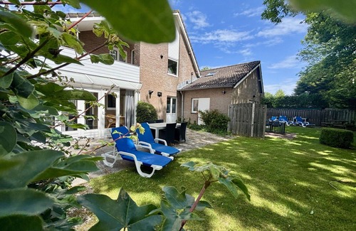 The vacation rental is situated in a quiet and sunny position along a wooded area, just 700 m from the sea and the beach. Guests can enjoy various recreational activities in the vicinity, including a marina (12 km), an 18-hole golf course (4 km), a surf school (6 km), a sailing school (10 km), tennis courts (500 m), minigolf (600 m), and a sports center (1 km). The property is suitable for families, and additional accommodations can be booked, including NL4356.300, which is located on the same premises. The complex has a total of 5 other houses available for rent.