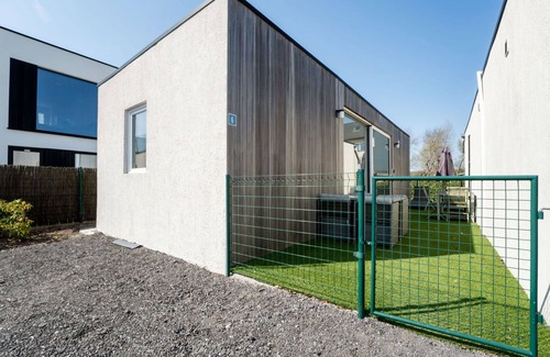"New dahlia park 6", 3-room house 44 m2. Comfortable and modern furnishings: open living/dining room with dining table, separate WC, digital TV, international TV channels and air conditioning. Exit to the terrace. 1 double bedroom with 1 bed (160 cm, length 200 cm), shower/WC. 1 double bedroom with 2 beds (80 cm, length 200 cm), shower. Open kitchen (dishwasher, 4 induction hot plates, toaster, kettle, freezer, electric coffee machine, combination microwave). Heating. Terrace furniture. Facilities: hair dryer. Internet (WiFi, free). Parking (1 car). Please note: non-smoking house. Maximum 1 pet/ dog allowed. Smoke alarm, fire extinguisher.