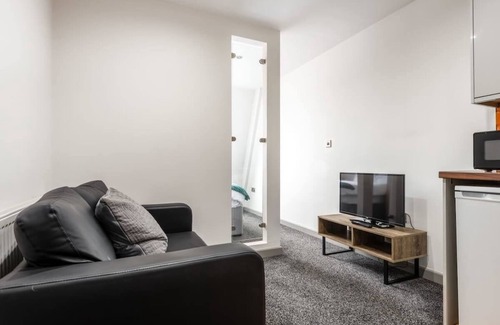 A cosy and convenient one-bedroom apartment in the heart of Halifax, thoughtfully designed with stylish furnishings and modern appliances throughout. The open-plan living area includes a sofa and TV, while the fully equipped kitchen provides everything you need for a comfortable stay. The comfortable double bedroom ensures a restful night's sleep, and the modern bathroom comes with complimentary towels and toiletries. Ideally situated near shops, restaurants, bars, and excellent transport links, this apartment is the perfect base for exploring Halifax.