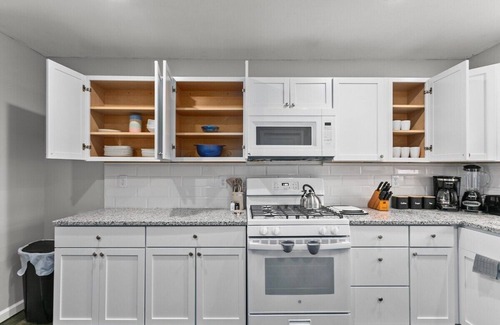 The well appointed kitchen is equipped with appliances, pots, pans, toaster, coffee maker, blender and an abundance of spices for cooking your favorite meals.We have small dining table so you can enjoy your morning coffee. Your perfect stay is our first priority and we are available if you need us, but offer you complete privacy as well. We accommodate both long term and short term rentals.