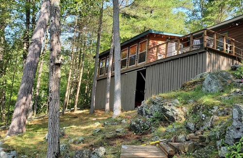 Located just under 2 hours from Toronto. Our peaceful waterfront cottage is perched on a small hill overlooking the beautiful Trent Severn Waterway (btw the Swift Rapids and the Big Chute locks) BOAT ACCESS ONLY! Enjoy the all day sun at the dock or relax in the shade beside the fire pit or in our gorgeous sun room over looking the river. Great swimming and fishing! Enjoy what cottage country has to offer!