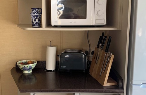 The caravan is comfortable and very well equipped with Wi-Fi, TV, DVD player, DAB radio and CD player. The kitchen has microwave, air fryer, kettle, fridge freezer, oven, hob and grill. The beds are very comfortable and the shower is excellent.