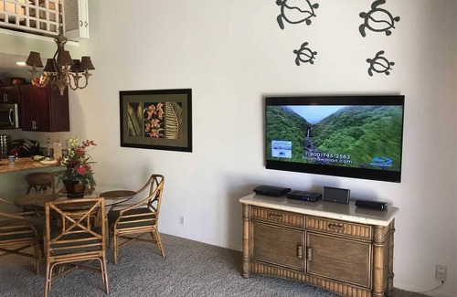 Our unit is spacious and inviting with just about everything you need for a spectacular Maui vacation. Maui Kamaole is a beautifully maintained property with lush tropical vegetation throughout. Gas BBQs are provided nearby and throughout the complex for cooking and grilling. There are two large swimming pools, two jacuzzis, (one with sand bottom), and tennis courts,