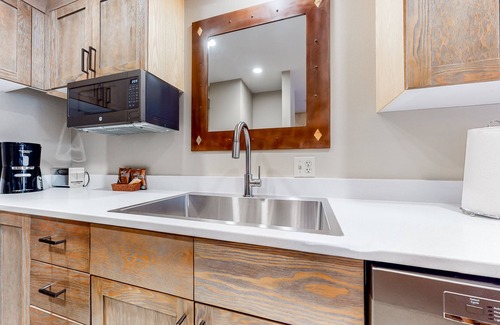 Nestled within Big Sky Resort just steps away from the Explorer lift at the base of the Chet's Knob ski run, this ski-in/ski-out home is the perfect way to enjoy your next ski vacation with friends and family! Inside, the living room is open and spacious, dressed with comfortable furniture, rustic and stylish wall art, and an elegant atmosphere throughout. Kick back in the armchair to enjoy a novel next to the fireplace or a movie on the flatscreen cable TV. The full kitchen has attractive cabinetry, stainless steel appliances, and plenty of cookware to help you prepare tonight's home-cooked meal. Serve up to six dinner guests at the handsome wood dining table while the dishwasher takes care of those dirty dishes. This is a ground-floor home, so it's easy to wake up to the aromas of freshly-brewed coffee then take the lift up to ski all the fantastic mountain slopes. After spending the afternoon on the mountain, come home to enjoy a good soak in the resort's shared hot tub. Don't forget to take advantage of all the other resort amenities as well, such as the community fitness center, the shared seasonal pool, and the sauna. Big Sky Resort also offers numerous wedding venues, each one certain to make your ceremony a stunning affair. This home enjoys a king-size bed in the main bedroom, plus a queen-size sofa bed and a queen murphy bed in the living room.