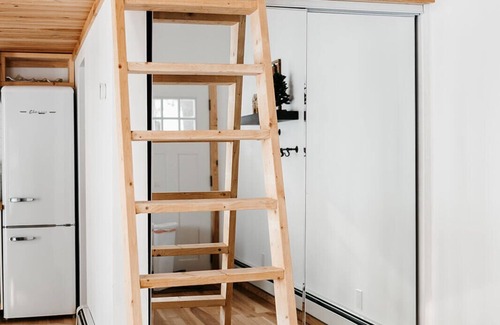 The cabin boasts of a lofted bedroom, adorned with soft linens and cozy furnishings. Fall asleep to the soothing sounds of nature and wake up refreshed, ready to embrace another day of lakeside adventures.