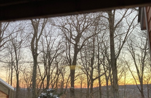 Beautiful updated cozy getaway. Level entry. Two bedrooms with queen beds, one with jacuzzi tub and third bedroom with two sets of bunk beds. Heated ceiling lamps in all bathrooms. Free wifi and cable included. Only a one minute walk to the seven springs free shuttle to skiing, snowboarding, tubing and restaurants at the lodge with many other activities. Only a three minute walk to the outdoor swimming pool and tennis courts. Floor to ceiling fireplace in living room. Wooden deck off sunroom level with backyard. Kitchen equipped with all kitchen supplies. Fresh linens and towels. Free coffee, tea and a bottle of wine complementary!