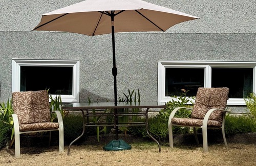 As you enter the property you can drive right up to the private entrance and park in the carport. Guests have private use of the entire suite. You will access the suite in the home with the passcode. You enter into the kitchen bar where you will find a small sink, dishrack, microwave and refrigerator. The fridge contains a filtered water pitcher, ice and your choice of "cream" for your coffee & tea. The doorway to your right is to the private lounge which includes a Keurig coffee bar, kettle, a single bed\sofa lounger, 2 occasional chairs and a TV with /Blu-ray/DVD player. Note: their is access to an extensive library of movies and series at your request. Down the hall to the right is the full bathroom equipped with eco refillable toiletries and fluffy white bath towels and face cloths to enjoy the soaker tub and shower. Across the hall is the master bedroom void of any media devices. The queen size bed is covered with a mattress encasement, a wool filled mattress cover, cotton sheets, duvet and a bedspread. All of this and just a stroll to beach access. The property is also located in one Parksville's best neighborhoods'. Please come and watch the night fall from 2 lounge chairs located just outside your suite. We would love to have you. Take care.
