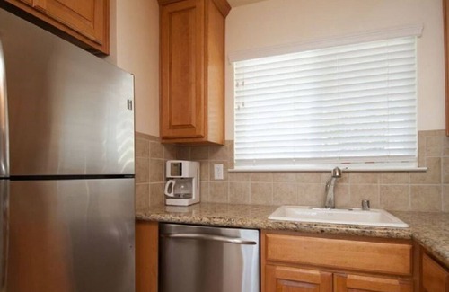 The well-equipped kitchen features maple cabinetry, granite countertops, and stainless GE Profile appliances. Two televisions and a DVD player are provided, as is high speed internet access. Baths have granite vanities with a tub/shower in the master. Each unit is heated by central forced air and includes a front-loading washer and gas dryer.