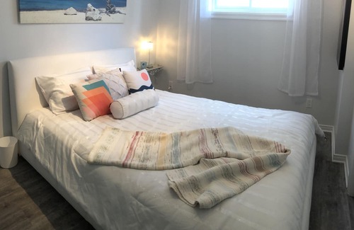Prepare a home-cooked meal in the kitchen, complete with an oven, a stovetop, and a refrigerator, as well as a coffee maker, an electric kettle, and a microwave. Connect to the free WiFi, or get cozy in front of the TV. Bathroom amenities include a hair dryer, towels, and toilet paper. And you won't have to pack extra clothes, because you'll have a washer and dryer, too. Other amenities at this 2-bedroom, 1-bathroom rental include bed sheets, an ironing board, heating, and a dining table.