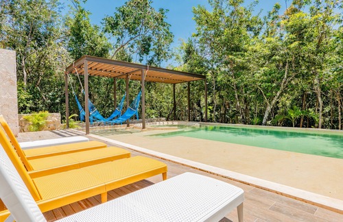The villa is near stunning cenotes. Swim in the crystal-clear waters of Cenote Azul, 12 km away, or explore underground formations at Cenote Dos Ojos, 30 km away. Cenote Cristalino is 10 km away, while Cenote Ponderosa, 15 km away, is perfect for diving. For a more adventurous experience, Cenote Chac Mool, 40 km away, features a breathtaking cave system.
