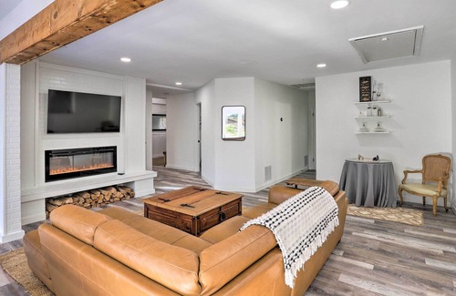 Find your bliss at this immaculate 4-bedroom, 2-bathroom Hendersonville vacation rental. This newly renovated, single-story house boasts an open floor plan, a game room, a home gym, a hot tub, and step-free access. Sway in the shady hammock, cue up on the pool table, build a tasteful charcuterie board in the fully equipped kitchen, or gather around the fire pit for story-telling. Explore the boutiques and breweries of Downtown Asheville or make a splash at Moonshine Mountain Tubing Park.