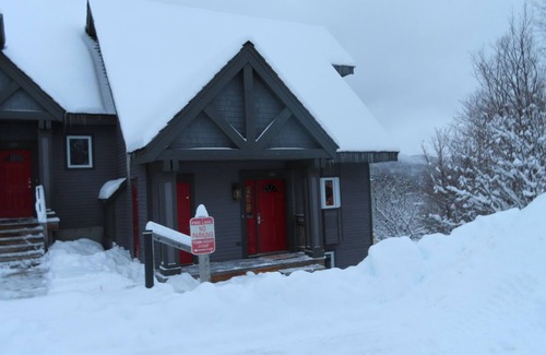 Luxury Jay Peak Resort Ski-in/Ski-out Townhouse Trail side (Racoon Run) has all the best Jay Peak has to offer! 5BR/4BA w/Outdoor Hot Tub. Large Living rm w/gas fireplace. Full Kitchen, Large Dining Area. Deck w/out door Hot tub. Cable TV in LR & LL Family room. WiFi. No Smoking. One of the TOP PLACES to stay at Jay Peak!