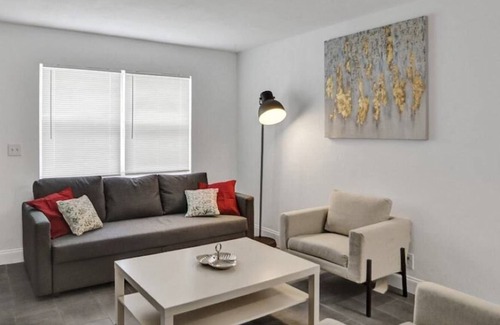 Located in a Developing Neighbourhood,Our vacation home is just 3 minutes away from the Convention Center, very close to the train station, and only a short drive away from Downtown, Palm Beach, and the Norton Museum of Art. Our 2 bedroom, 1 bath apartment with an outdoor living area perfect for a barbecue in the garden with recreational games like trampoline and badminton.