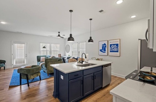 Stay in style in the eclectic city, home to the 2nd largest banking center in the USA—Charlotte! This classy 1507 sq. 3-bedroom & 2.5 bathroom Townhouse features 2 King beds and 2 Full beds for your comfort, Lightning Fast Wifi, a Convertible Sleeper Couch, a Fully Equipped Kitchen, and other Luxury Amenities—specially designed for your longer-length stays! Step out to a lively neighborhood, minutes from Uptown Charlotte—steps to restaurants, cafés, bars, and shops!