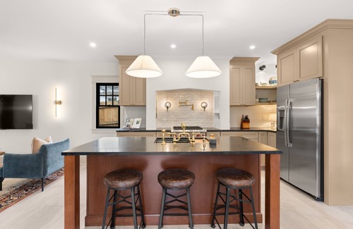 Cuddle up on the couch for a movie night, enjoy a book from our library, or break a sweat on the Peloton - something for everyone! Dream Cloud Premiere Mattresses and blackout shades ensure peaceful sleep. We provide towels, linens, luggage stands, and a Keurig coffee machine for your convenience. The kitchen is equipped with top-of-the-line appliances for culinary enthusiasts. With 4 bedrooms and 3 bathrooms, our home comfortably sleeps 11. You'll also find two 65" Smart TVs with cable access for entertainment. Children's Pack'N'Play and High Chair are available upon request.