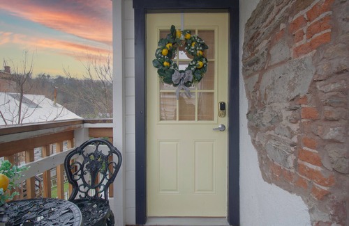 Welcome to Lemon Drop Loft. This newly restored second-floor 900 sq ft circa 1860s historic building has a private entrance easily accessed from an outside staircase. It comfortably accommodates 4 guests with two bedrooms, each with a queen size bed. 2 additional guests can utilize a futon in the sunroom. The full bath has a splendid waterfall shower. The great room is tastefully decorated with sitting area, cable TV, Blu-Ray player, DVD’s, free Wi Fi, dining table and a full kitchen should you choose to prepare your own meals. The kitchen is highlighted with stainless steel appliances, including a range, microwave, dishwasher, and refrigerator. This well-appointed kitchen includes pots, pans, dishes, silverware, cutlery, glasses, mixing bowls, cookie sheets, a toaster, 10-cup coffee maker, mixer, blender, towels, dish soap, and dishwasher soap. The sunroom is bright and cheery and can accommodate an additional one to two guests utilizing a comfortable futon. In addition, the sunroom can serve as a private office space with use of a printer. The laundry room located off the sunroom has a washer and dryer. Tide Pods are provided for washing needs. Free parking is available on our adjacent property as well as free street parking.