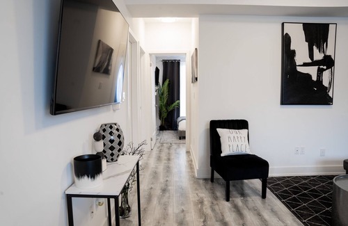 Escape to our refined 2-bedroom, 2-bathroom condo just moments from Niagara Falls. This elegantly appointed space boasts a fully equipped kitchen, offering a luxurious yet cozy home-away-from-home feel. Enjoy your downtime with a movie or stay up-to-date with current events on our 65-inch TV. Experience comfort and relaxation with our sumptuous bedding and plush couch. Nestled in the heart of Niagara, our condo is a stone's throw away from some of the area's most upscale restaurants and casinos. Prepare yourself for an unforgettable stay!