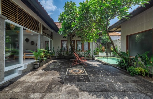 Very quiet, spacious place, with private pool and garden. It is a 15-20 min walk from Sanur beach. Shops, restaurants, typical Balinese food. Have fun with the whole family in this stylish accommodation.