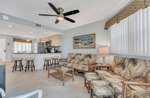 Unit 503 has been recently upgraded, nicely decorated and is fully equipped with new furniture, 3 Smart TV's, wireless internet, new appliances including stove, microwave, dishwasher, washer and dryer, and full-size refrigerator. The towels, including beach towels, and linens are provided as are basic soaps and a hairdryer. Unit 503 also has reserved, covered parking near the lobby entrance.