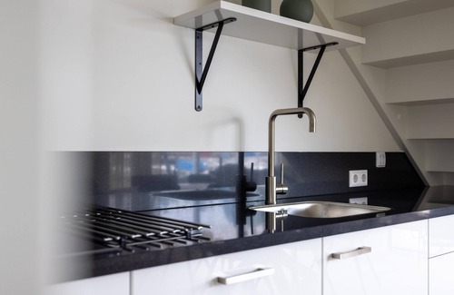 This luxury holiday home is located right on the water near Amsterdam and Alkmaar. You have your own terrace right by the water and an open living room with large windows. So you can enjoy the passing boats all day long. In warm weather, you can jump straight into the water. There are two bedrooms and a bathroom on the ground floor. On the first floor is the master bedroom with en-suite bathroom, from where you can walk straight onto the roof terrace, where you have an amazing view