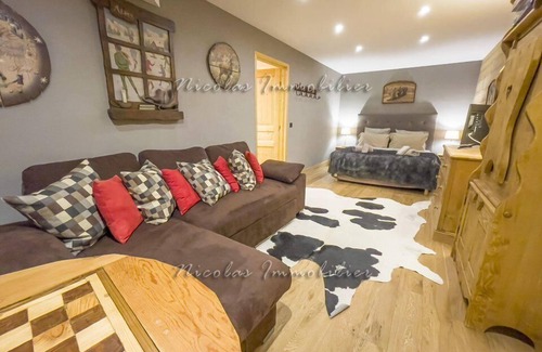 Magnificent spacious family chalet 150 m², mountain view, charming decoration, luxury materials, with 5 bedrooms, 12 beds, 2 bathrooms, 1 shower room, 4 toilets (including 2 independent) and a garage in the chalet.