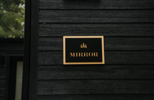Newly constructed in 2025, this sophisticated cabin has mirrored-glass walls and is nestled in the pines of the Woods & Co weddings + Events property. This special retreat offers a truly magical escape for your romantic getaway. Seamlessly blending into the surrounding landscape, the mirrored cabin reflects the beauty of the woods. Step inside to discover the cozy haven adorned with modern amenities including a soaking tub, king-sized bed, and kitchenette, and walk-in shower. Privacy is provided by remote-controlled smart-glass. Enjoy the beauty of the woods with a truly unique view of the surroundings. Located 100 feet from the Woods & Co venue's front doors or approximately 2 miles from the Hidden Meadow & Barn wedding venue.