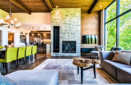 This splendid 3,000 square foot chalet offers an exceptional view of nature. A big mansion that has the most unique decor! Perfect for a Family Getaway, with fun private amenities!