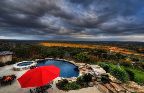 This luxury home was built in 2012 on the side of the Cedar Mountain range next to a spring and waterfall. You will not find a more rustic luxury home in the hill country with a million dollar view. The home is located off of the Willow City Loop on one of the highest elevations in the hill country with views of Packsaddle Mountain and the Willow City loop. The Willow City Loop is known for its scenic drive in the hill country just a short distance from Fredericksburg. The photos describe the beauty of the home but the experience is breathtaking. The home has three bedrooms and sleeps six. Our ranch also has the Martin Fort that is located at the bottom of the mountain for larger groups VRBO.