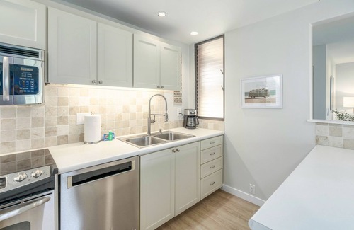 This condo features every amenity: a lightning-fast internet connection, luxury linens, and a professionally prepared space ideally designed for home base for your most spectacular vacation yet. The open-layout kitchen is equipped with stainless appliances and large, granite countertops with a bar seating area.